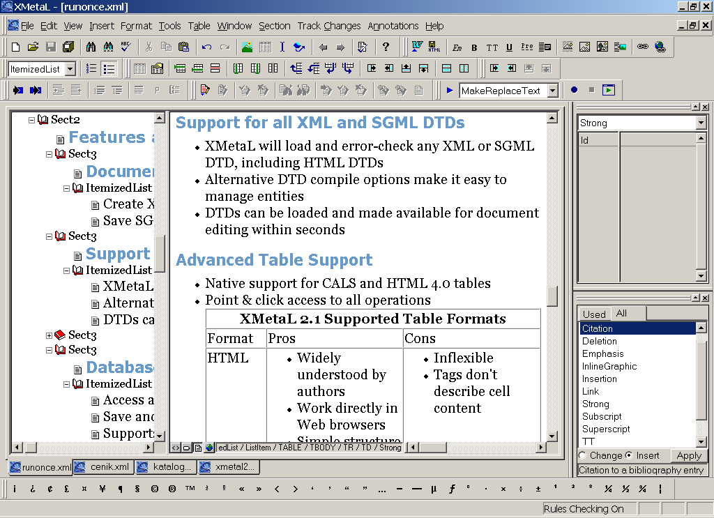 | Jednou větou: | Špičkový WYSIWYG editor pracující s formáty XML a SGML |